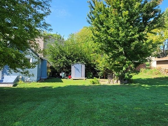 Cute little doll house on a corner lot ready to be loved by you! This 2 bedroom home sits on a nicely landscaped lot. Features include, Large primary bedroom, wood floors, vinyl siding, storage shed, some vinyl windows, and gutters, roof, furnace & water heater approx. 7 years old. Stove, refrigerator, microwave all stay. enclosed back porch not included in square footage.