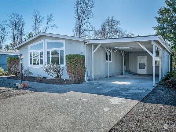 Welcome to James St. Estates, age 55+ mobile home park. Unit 12 is one of the best locations on the park's south side, backing up to a city green belt with creek. This 2 bed/office/2 ba home has recent upgrades including new flooring, windows, roof, counter tops, appliances and painting inside and out. Vaulted ceilings w/ lots of windows & 3 skylights make this home light & bright. Large deck and covered front porch offer space for relaxing and entertaining. 14x20 shop has 2 skylights & work bench. The carport has space for 2 vehicles, RV Storage and a newly remodeled club house extend your living areas. In addition to purchase price, a $39k fee is required, $34 of that is refundable.