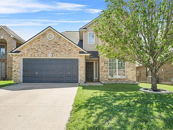Come view this spacious 4 bedroom, 3.5 bath home in south College Station. The open layout features high ceilings, a formal dining area, and a cozy family room with gas fireplace. The kitchen boasts upgraded Samsung appliances, granite countertops, breakfast area, and a walk-in pantry. Upstairs, you'll find a versatile game room with a projector & screen, ideal for entertaining. The expansive primary suite includes a generous walk-in closet and a separate shower & soaking tub. Enjoy outdoor living in your private backyard oasis with a covered patio, porch swings, and a hot tub. Conveniently located near schools, shopping, dining, and Texas A&M University.