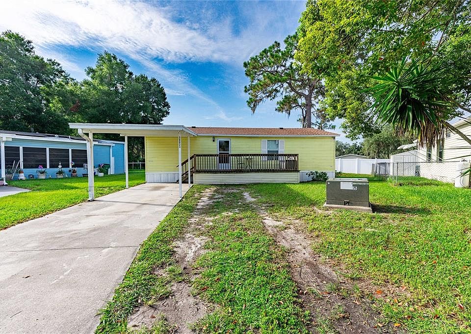 Are you looking for a home that offers privacy, NO HOA, with fencing and corner lot? Then look no further! This well-maintained home with newly updated roof and 2021 heating/cooling unit will not disappoint! The home sits on a corner lot, so you have a nice big back yard. As you walk up to the home, you are greeted by a front porch which is perfect for enjoying a nice restful afternoon of reading or just relaxing in a warm, Florida breeze. When you enter the home, you will find yourself in the spacious, living room with windows to allow natural light, laminate flooring, a ceiling fan and a floor plan that is open to the dining area and kitchen which lends itself to great entertaining space for family and friends. The kitchen offers plenty of storage, laminate flooring, and ample counter space. The home also offers a desirable split bedroom plan. The master suite is located at one end of the home and is large enough for a king size bed and all the accompanying furniture, has a ceiling fan, carpet, and ensuite master bathroom with vanity, a step-in shower, and a linen closet. Bedrooms two is oversized with ceiling fan and has its own door to the guest bathroom. and three are located on the other side of the home. Both have walk-in closets and are large enough to accommodate queen sized beds. The guest bath with tub/shower combo is conveniently located nearby. The inside laundry room is located just off the kitchen. If the house itself didn't wow you enough, just step out the back door and see the storage shed with plenty of room for all your tools and workbenches. This backyard is great space for a nice garden, or raise some chickens which reside there now with a chicken coop. So what are you waiting for! Schedule your appointment today, and don't let this one get away!