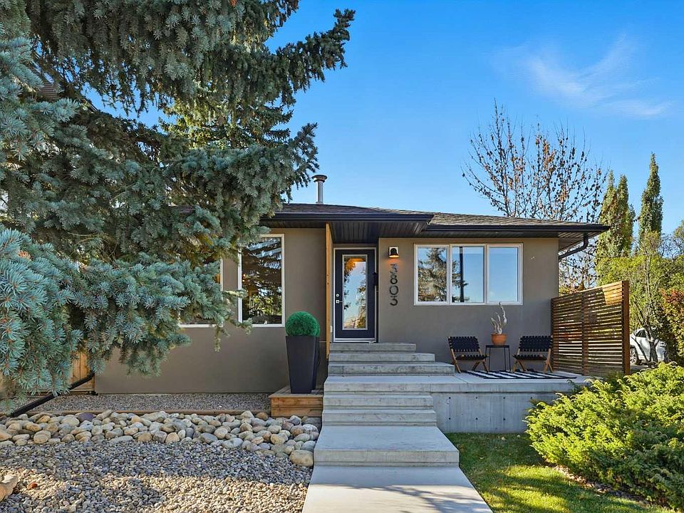 Perfectly positioned across from Kiwanis Park in Altadore, this fully renovated vaulted bungalow pairs modern design with everyday comfort. The striking curb appeal begins with a modern façade, low-maintenance landscaping and a welcoming front patio shaded by mature evergreens. Inside, soaring vaulted ceilings and sunny skylights create a bright, airy living room anchored by a gas fireplace surrounded by clever built-ins and shelving. Oversized windows capture leafy park views, while built-in speakers add ambience for relaxing or entertaining. The chef’s kitchen impresses with sleek full-height cabinetry, a designer tile backsplash, gas stove, stainless steel appliances and a waterfall-edge island perfect for casual dining or conversation. A wall of glass frames the backyard and floods the space with natural light, connecting seamlessly to the adjacent dining area where patio sliders open to the west-facing deck for effortless indoor/outdoor living. The main level continues with a showstopping creative studio featuring exposed wood beams, custom lighting and generous workspace ideal for design, art or a home office. A comfortable guest bedroom enjoys park views, complemented by a stylish powder room. Downstairs, the family-friendly layout continues with a large recreation room designed for movie and game nights. The spacious primary retreat features a built-in closet system and a luxurious ensuite with dual sinks and an oversized rain shower. Two additional bedrooms, each with large windows, share a modern 4-piece bathroom. The beautifully finished laundry area adds thoughtful function with built-in storage and folding space. Outside, a massive west-facing yard invites outdoor enjoyment with a huge deck for barbeques, lounge areas for warm weather gatherings and plenty of grassy play space for kids and pets to play. Comfort is ensured year-round with central air conditioning, on-demand hot water, a high-efficiency furnace and a water softener. Set on a corner lot within walking distance to River Park, Sandy Beach, and the boutiques and cafés of Marda Loop, this home embodies the best of Altadore living, design-forward, functional and outstandingly located! Open house Sat/Sun 12-2.