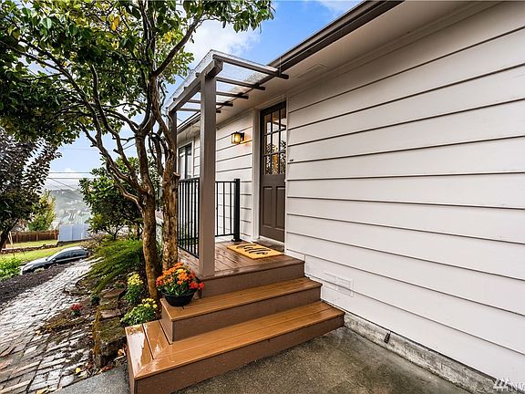 Sunrise, City and Mt Rainier views are a bonus for this cool 3 bed/1.5 bath Midcentury modern. $75,000+ in updates. Brand new kitchen, appliances and decks along with updated baths and dining make this home easy to move right in. Large Owners suite with walk in closet. Newly landscaped fenced backyard is great for entertaining and relaxing. Home office space built right in. Heated floors in baths and dining room. Lg corner lot w/off-street parking for 3 cars. Enclosed storage under front deck.