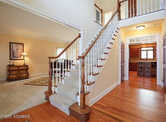 Gorgeous Red Gate home on private 1/2 acre tree lined lot! Close to top rated St Charles North High School, parks, Fox River & charming downtown St Charles! Stately red brick home features sought after OPEN LAYOUT with high ceilings, extensive white & stained millwork, approx 4,300 sq ft tot living space. You'll love this stunning cherry kitchen w/ tons of staggered cabinetry, glass door fronts, granite counters & AWESOME ISLAND!. Huge family room w/ vaulted ceiling, attractive brick fireplace & triple bay. 1st floor den has built-in shelving & adjacent full bath. Relaxing master suite with bonus sitting room, nursery or 2nd office, grand master bath with whirlpool tub & separate shower plus enormous walk-in closet. FINISHED English basement has large rec room with mini-kitchen setup, 5th bedroom w/ big walk-in closet, bath & mirrored fitness room. In-ground sprinkler system, wiring for invisible fence. Enjoy private back yard on the deck or paver patio. Close-in St. Charles location!