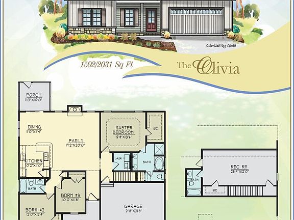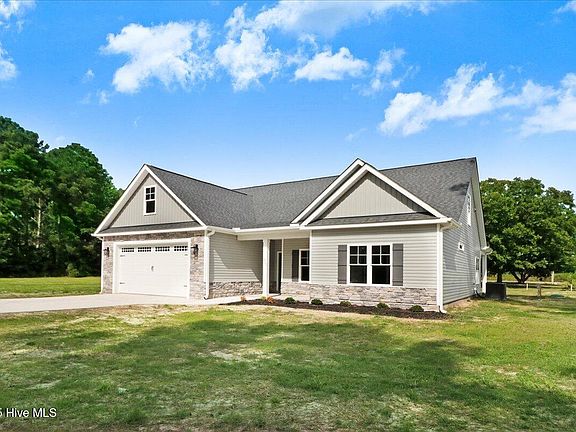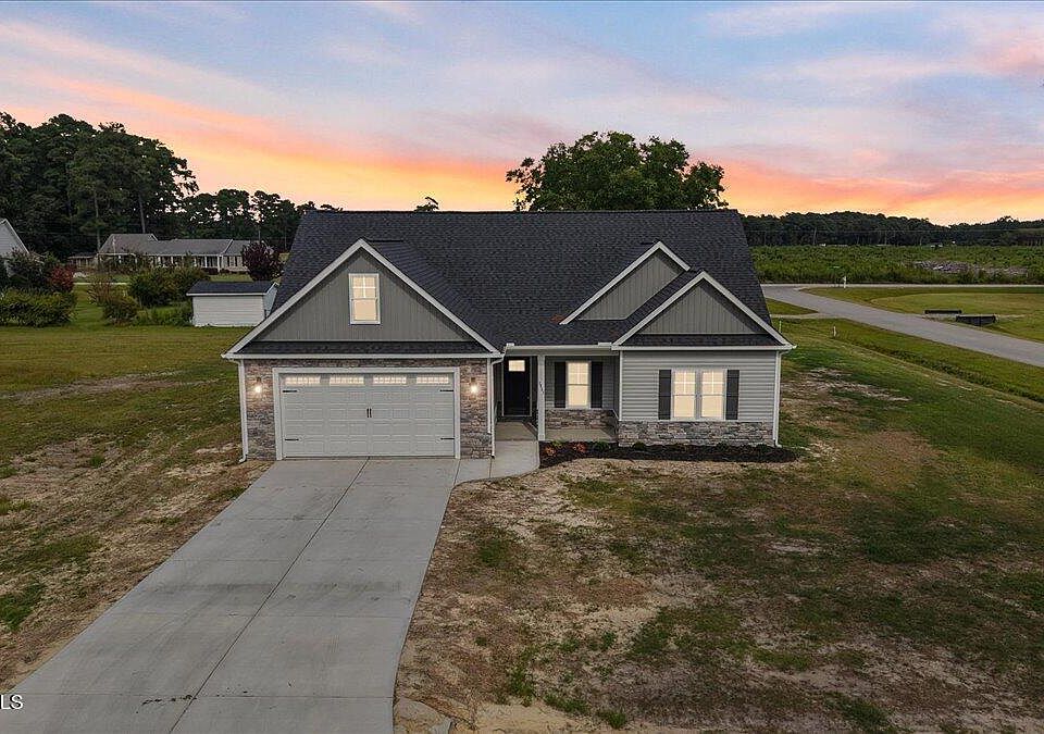 The Olivia Plan features approximately 2,031 sq. ft. of thoughtfully designed living space, offering 3 bedrooms, 3 full baths, and a spacious bonus room with its own full bath and walk-in closet—perfect for guests, a home office, or flex space. The open-concept layout includes a bright family room flowing into a stylish kitchen with quartz countertops, a breakfast bar, tile backsplash, stainless steel appliances, and a pantry. The first-floor primary suite provides a relaxing retreat with a walk-in closet, dual vanity, soaking tub, and separate shower. All bedrooms are located on the main level, with the bonus room upstairs. Additional highlights include a walk-in attic for future expansion, a dedicated laundry room, covered front and rear porches, a 2-car garage, and a large backyard. The versatile bonus room offers endless possibilities—ideal for a media room, home gym, or playroom. Conveniently located just minutes from UNC Hospitals in Goldsboro and Kinston, with an easy commute to Seymour Johnson AFB, 15 minutes to Walnut Creek, and just over an hour to the NC beaches!