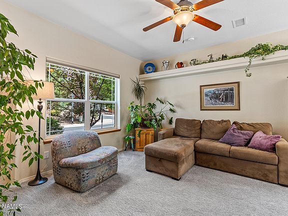 This absolutely immaculate home in Mt Elden Villas is a must see! The home boasts 3 bedrooms, 2.5 bathrooms, ample natural light, neutral colors, central air, a gas fireplace, and tasteful touches throughout. The primary suite features a walk-in closet, double sinks, and a separate tub/shower. The 2 car garage provides an abundance of space for parking and storage. Out back, you'll find the perfect tranquil setting in which to relax. Conveniently located at the base of Mt Elden, the property is just a short walk to the Flagstaff Urban Trails System, and just a brief drive to Rte 66 and the I-40. Welcome home!