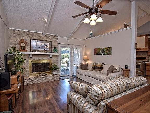 Wow! This beautifully updated home is a must see! Complete kitchen remodel includes cabinets, backsplash, counter tops, appliances, fixtures & flooring. Refrigerator & rolling island convey. Both bathrooms have also been redone & look great. HVAC 2011, refrigerator, range & windows 2010, roof 2006, sliders replaced, outside flagstone/crushed granite patio added. Main living room features fireplace & vaulted ceilings. 2nd living could be home office, playroom, workout room, etc. Close to Everything!