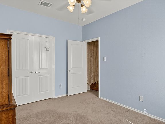 The primary suite provides a private retreat with an en-suite bath and generous closet space. Two additional bedrooms offer versatility for guests, family, or a home office. Step outside to a fenced backyard ideal for gatherings, playtime, or quiet evenings under the Texas sky.
