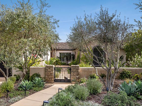 Stunning single-story Mediterranean home dazzles with vaulted ceilings and abundant natural light. Flow seamlessly from the outdoors, in through the oversized sliders & French doors enjoying a verdant view from every vantage point.