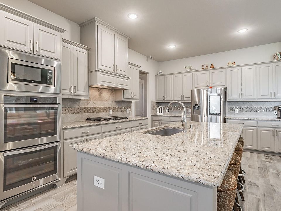 Stone gas fireplaceDedicated officeExpansive backyardGranite countertopsCovered patioMedia roomWalk-in closet
