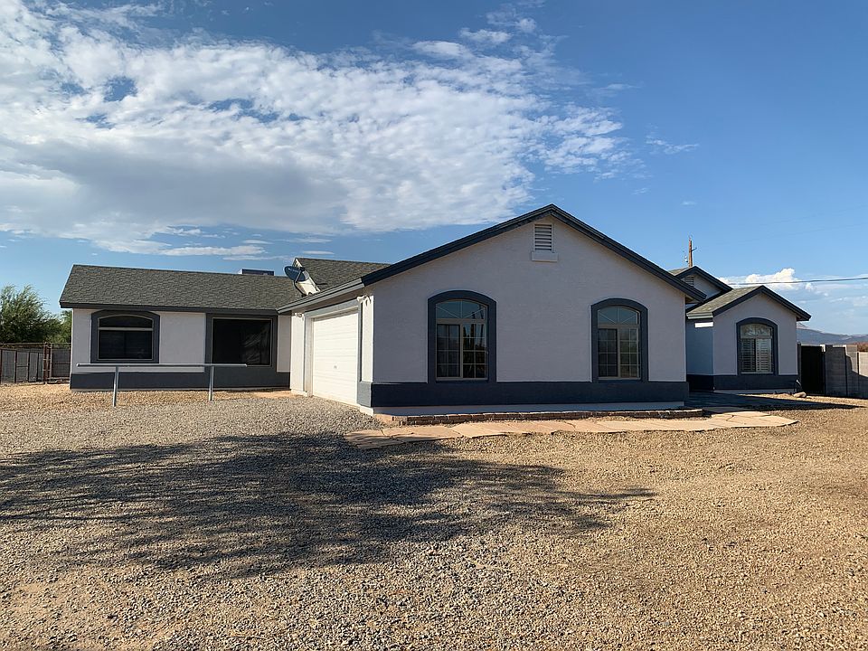Sought after Horse Property in Desert Hills. Freshly Painted and Brand New Carpeting. This home is ready to move in. Featuring 3 bedrooms, 2 bath, Vaulted Ceilings, Open spacious Kitchen includes large Island and plenty of cabinets. Back yard with extended covered patio, 2 stall mare motel, fenced turn out, RV gate for easy access. Oversized 2 car garage with Cabinets. Master retreat with double sinks, separate tub and walk in shower. Breathtaking views, no need to trailer your horse you can ride right out into the Desert from your back yard. Great location, just minutes from I-17, shopping & Lake Pleasant, No HOA here, bring your toys there is lots of room. This is a Non Smoking Property.