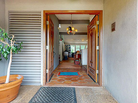 Welcome to this stunning Mid-Century Post & Beam by Architect Edward Fickett, FAIA. Mr. Fickett helped to develop Sherman Oaks, Reseda & Granada Estates and is best known for more than 60,000 homes of his design, known as the 'Fickett houses'. Built in 1957, his home has been in the same family since 1960. Character and charm await you as you step through the double door entry. Vaulted ceilings and walls of glass make this home feel spacious as it brings the outdoors in. The flooring throughout the house consists of wood in the kitchen, laundry area and breakfast room with tile flooring in the rest of the home. The wood burning, gas starting fireplace in the living room is not only a focal point but made of slump block which you will also see in various areas of the home. The dining room which is adjacent to the living room also shares window views to the outdoors. The galley style kitchen with plenty of cupboards has granite counters with a counter bar for guests to sit and enjoy watching the 'happenings' in the kitchen. There is a separate formal breakfast room which is adjacent to the kitchen and has floor to ceiling windows - another way to bring the outdoors inside with a privacy wall in the front yard. The laundry room is adjacent to the kitchen and is decent size a cupboard for storage and room for a folding table. The hallway leading to the three bedrooms boasts a skylight to add to the light/bright feeling of this special home. The Master bedroom has a three-quarter bathroom and is located at the end of the hall. The other 2 other bedrooms look to the rear yard with sliding doors for access. Each bedroom has decent sized closets, large windows, tile flooring and vaulted ceilings. The rear yard is private and has a desert style area with a small walking path on the north side and then the other part of the yard has an inground pool for your summer fun & entertainment. A small courtyard, hand built by the current owner's mother shortly after purchasing the home in 1960, is just outside of the kitchen and leads you to either the rear yard or the two car detached garage. A few upgrades include double pane windows and sliding doors, two water heaters (replaced in 2023) and forced heating. This location is not far from Deervale-Stone Canyon Park, Fossil Ridge Park, hiking trails, lookout points, shopping and restaurants. Are you ready to own a Fickett House?