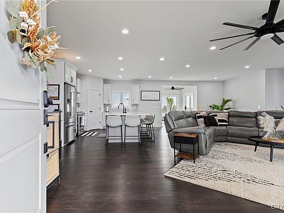 There is much to be thankful for in this better than new ranch! A beautifully designed open concept welcomes you home. A custom shiplap surround and wood mantle adorn the gas fireplace, in the living room. The kitchen is host to stainless steel Kitchen Aid appliances, quartz countertops, a deep granite sink, soft close cabinets and drawers, a large center island and a spacious pantry. The morning room offers wonderful space and brings in abundant natural light. Custom and quality features continue in the large primary suite. The primary bath features a dual vanity, quartz countertop, soft close vanity doors and drawers, porcelain tiled shower with glass entry, closet organization and pocket doors. The two additional bedrooms share another full bathroom with a quartz countertop, soft close vanity, pocket door and a large linen closet. Entry from the garage features a well appointed mudroom and first floor laundry room with a large coat closet. The basement entry integrates the finish-able basement space. The basement was thoughtfully designed for additional living space, with a bathroom rough-in and a full egress window. Exterior finishes echo the same quality you will appreciate throughout. The backyard offers exceptional enjoyment with the expansive patio and built in firepit. Surrounded by a spacious yard and a maintenance free vinyl privacy fence. Professional landscaping adds great curb appeal. This incredible home is nearly new, with an abundance of upgrades and no wait to break ground and build. Showings will begin Sunday 11/24.