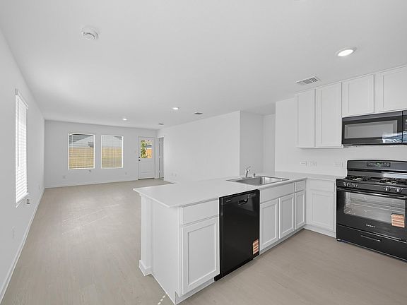 Plush carpet in bedroomsTwo-car garageOpen-concept floor planDurable vinyl wood-style flooringAmple storagePrivate fenced backyardKitchen with black appliances