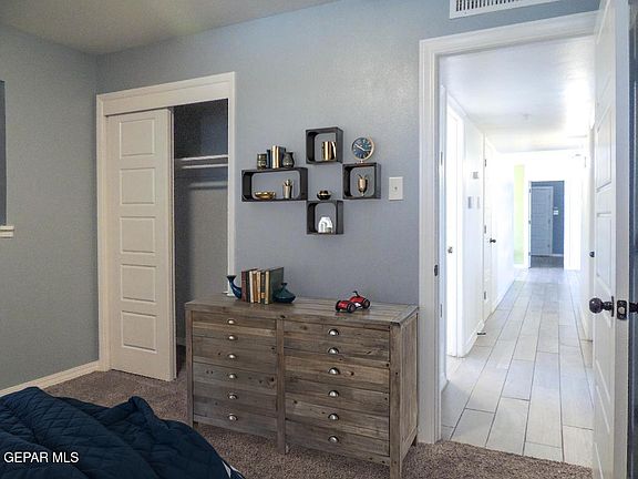 Situated in a vibrant community known for its diverse culture, scenic landscapes & proximity to the U.S.54 & Fort Bliss. This home is located in a neighborhood offering convenient access to local amenities, schools, parks & major roadways. The exterior includes a front yard with desert landscaping, designed for low maintenance water conservation. The property has a driveway & garage for off-street parking & a fenced backyard with large covered patio for outdoor enjoyment. 4 bedrooms, 2 bathrooms, spacious living room, kitchen with modern appliances & dining area. Flooring includes tile & carpet. The home is equipped with central heating & refrigerated air conditioning to accommodate the region's climate. 3804 Titanic Ave. in El Paso, TX, is an ideal residence for those seeking comfort, convenience & a welcoming community atmosphere. The property's location & features make it a desirable choice in the El Paso real estate market. All appliances do stay with the home ;)