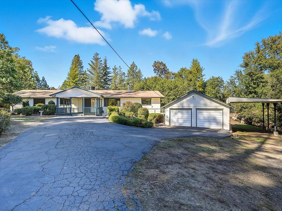 Discover this exceptional 3-bedroom, 2-bathroom home on 1.14 acres of useable land at 38040 Wortham Rd in the charming community of Oakhurst. This 1,769 square foot residence offers the perfect blend of comfort and outdoor recreation, situated just minutes from Bass Lake and close to the world-renowned Yosemite National Park.The thoughtfully designed kitchen features electric stove, separate built-in oven, microwave, dishwasher, and trash compactor. Custom touches include bottom cabinets with pull-out drawers, a built-in double pantry with five shelves each, and peninsula cabinets with convenient pull-out storage. The home includes a formal dining room, office or utility space, and a cozy living room with a wood-burning stove.The primary bedroom boasts an attached bathroom with shower and double walk-in closets on both sides. Additional bedrooms include one with sliding closet doors and another with a single walk-in closet. Both full bathrooms feature vanity cabinets with pull-out drawers, while one offers a combination bath and shower, and the other provides a separate shower.Outdoor living is enhanced by a spacious back deck, front gazebo-style porch with ceiling fan and lighting, stone fire pit, and horseshoe game area. The property includes a over sized two-car garage and RV port with renewed awning. Recent updates include a ten-year-old roof and interior/exterior painting completed five years ago.Modern amenities include a water filtration system, swamp cooler, forced air heating and air conditioning, ceiling fans throughout, mini blinds, and double-pane windows. The quiet neighborhood setting on generous acreage provides privacy while maintaining convenient access to Vons grocery store and community college. This versatile property presents excellent potential as a vacation rental investment or permanent residence.