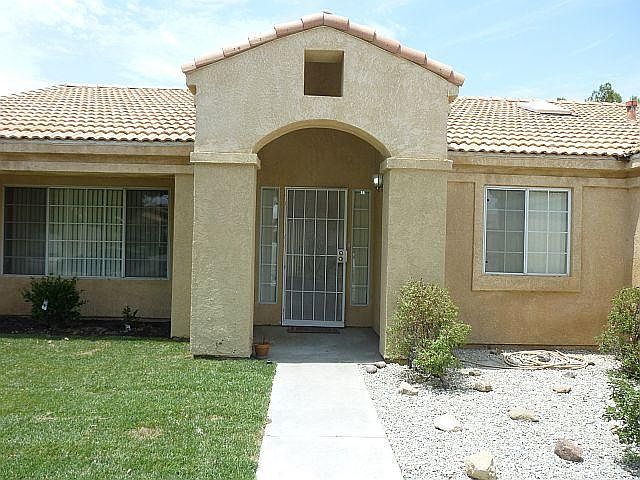Adorable 3 Bedroom, 2 Bath one story in Palmdale! Spacious living/dining room; lovely neutral color carpeting; upgraded tile in baths and halls; light and bright with 3 skylights; den with fireplace; kitchen includes refrigerator, dishwasher, microwave, stove and garden window with eating counter; master suite with vanity and walk-in closet; covered patio; 2 car garage with storage and built-in cabinets! $1650 per month NO PETS. NOT SECTION 8 APPROVED
