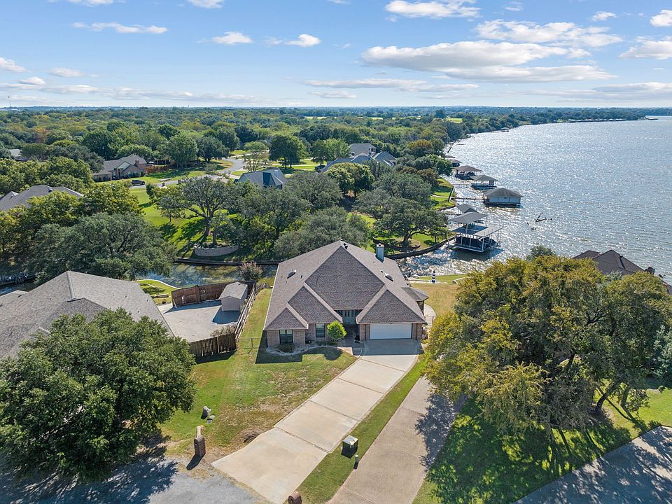 Lakefront Living in Granbury, TX! Nestled at the end of a peaceful canal with stunning main body lake views, this beautiful 4-bedroom, 2-bathroom home offers the perfect blend of relaxation and function. Enjoy life on the water with your private boat dock featuring two slips, ideal for weekends full of boating, fishing, or sunset views right from your backyard. Inside, you’ll find spacious living and family rooms, a sunroom overlooking the canal that brings approximately 400 more sqft of space, and two dining areas—perfect for entertaining or hosting family gatherings. The large kitchen is a chef’s dream, featuring granite countertops, a center island, and plenty of storage. Inside the garage you'll find epoxy floors and an elevator for making it easy to store items in the attic. Located on a quiet cul-de-sac, this home offers both privacy and easy access to all that Granbury has to offer. Whether you’re looking for a full-time residence or a weekend lake retreat, this property is truly a rare find!