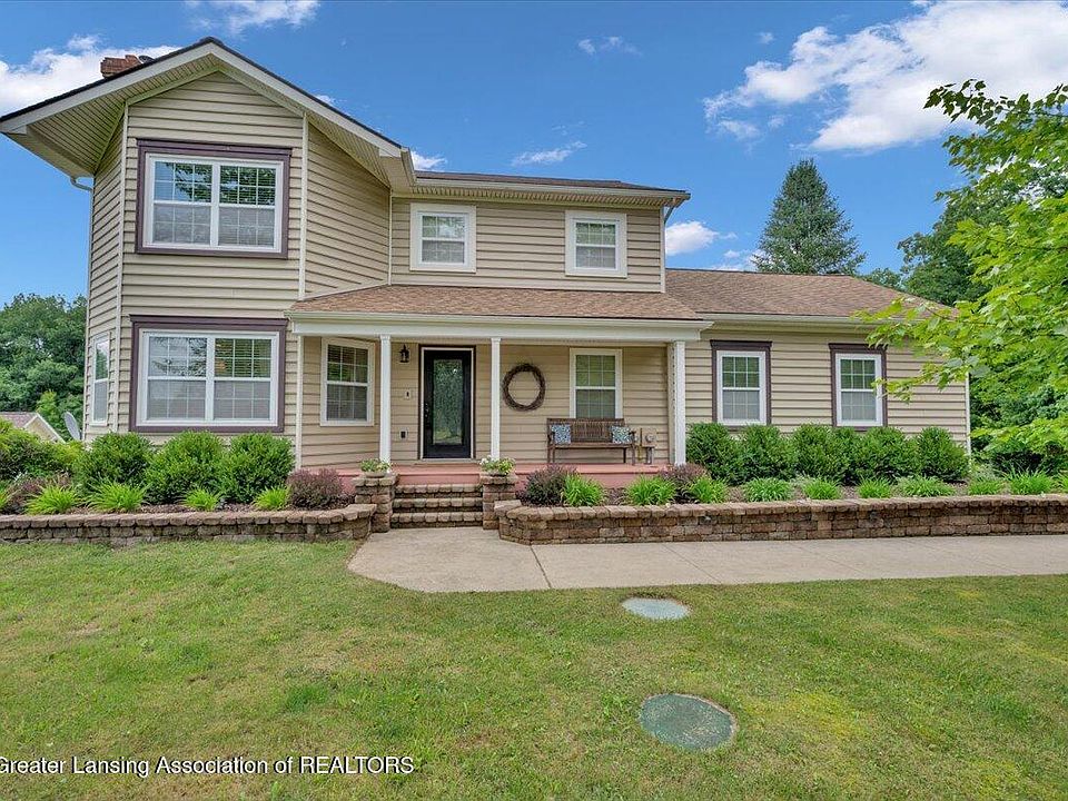 Beautifully remodeled executive 2-story on over 3.5 wonderful acres! It's loaded with all the extras! Four bedrooms, 3.5 bathrooms, large living room, with crown molding, bay window & fireplace! ''Fabulous'' gourmet kitchen w/breakfast bar, plus great finished lower-level w/walk-out & patio! Massive custom deck overlooking stunning views of Nature's best! Quality construction & upgrades throughout! Kitchen has cabinets galore, upgraded appliances, 2 pantries & extensive counter space. Formal dining room with a bay window beaming in natural light & gorgeous views! Luxury primary suite with generous custom walk-in-closet, double vanity, tile shower, and more! Three additional spacious bedrooms & all bathrooms. remodeled. Newer washer/dryer, light fixtures and ceiling fans & MORE! Newer external and internal Water Pump! Tranquil therapy while relaxing on the amazing front porch! It's the home away from home, without leaving your property. All this and so much more!! This desirable property awaits it's new owner! Move in ready!