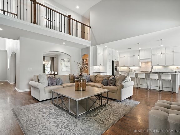 Your Retreat Awaits in Scissortail at Wind River. This exquisite 5-bedroom, 3.5-bath corner-lot residence is more than a home—it’s a retreat designed for comfort, style, and unforgettable moments. From the moment you step inside, you’re welcomed by light-filled spaces that blend modern elegance with everyday livability. At the heart of the home, the gourmet kitchen beckons with its gleaming gas range, high-end finishes, and seamless flow into the open great room. Here, a striking stone fireplace anchors the space, while large windows frame serene backyard views—an inviting backdrop for everything from cozy evenings to lively gatherings. The main-level master suite is a private sanctuary, offering a spa-inspired en suite bath where relaxation comes effortlessly. A thoughtfully placed guest suite on the first floor ensures privacy and comfort, while upstairs, two more bedrooms, a media room built for movie nights, and a versatile flex space create endless opportunities to live, work, and play. Step outside and you’ll discover the showstopping backyard oasis—complete with a sparkling pool, generous patio, and lush lawn that set the stage for summer barbecues, afternoon swims, or quiet mornings by the water. Impeccably maintained and nestled within the highly sought-after Jenks Southeast school district, this home combines convenience, luxury, and warmth in every detail.