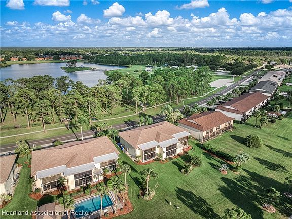Coveted ground floor 2-bedroom 2 bath condo at Sun N Lakes, overlooking the 11th fairway of Deer Run Golf Course from the back screened in patio and gorgeous water view from the front... Enjoy this move-in-ready, partially furnished home with over 1200 s.f. of living space!! The kitchen has plenty of cabinets and space for a breakfast nook at the east facing window for your morning coffee. A nice open split floor plan with both living room and master bedroom opening to the back lanai for beautiful sunsets. You are just steps away from the pool and the community center is a short distance offering a playground, basketball court, swimming pool, fitness center, pickleball, and access to the country club. This active community has it all and still a short drive for some great shopping and dining. Call and make an appointment today to see this one!