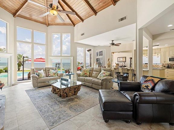 One of A Kind, Incredible, Panoramic VIEWS from the living area of this home ....unprecedented, spacious, Lot/Home that not only allows for real enjoyment & entertaining, but is also centrally located in the heart of Destin! Secluded, while convenient, all at the same time. Located on an acre waterfront is this contemporary but warm 4bed 4bath home, with a beautifully finished winding, paver drive that leads you to a grand entrance and 3 car garage! From the foyer, you're instantly drawn to the back of the home and the water with almost 180 degree views of the water through the floor to ceiling windows that bring the outside in, by allowing a full view of the pool, immense, green lawn, clear bay waters, dock/boat lift, with sun deck above. You will never tire of enjoying the views!! Single story home , gated entrance with stone wall border. This home had extensive renovation prior to this owners purchase and since the current owners have added paver driveway, patios and path to water, renovated guest baths, interior and exterior paint, new dock and extra rip rap at seawall and an epoxy coated pool deck. New carpet was just installed in the master suite. Flat roof was recoated with a TPO membrane in 2017 with a 10 year warranty.