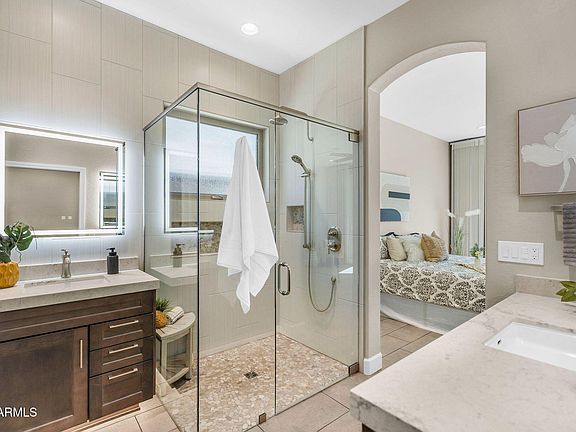 Completely reimagined Desert Willow floor plan in the heart of Las Sendas with ultra high-end finishes & smart home technology. Step into the gourmet kitchen featuring quartz leather finish counters, GE Monogram/Advantium appliances, beautiful cabinetry, & custom details like foot-pedal faucet & Insta-hot water. Relax in the spa-inspired primary en-suite including Toto bidet, walk-in shower, & soft-close pocket doors w/ full length mirrors. Control lighting, fans, and blinds with voice commands & enjoy modern comforts such as new plumbing throughout & added sound insulation. Level 2 Tesla wall charger & ample storage are found in the 3-car garage. Las Sendas community provides resort style amenities including multiple pools, parks, pickleball, tennis, golf, clubhouse, restaurant & more!