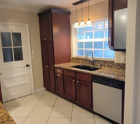 *RENTAL PRICE INCLUDES LAWN SERVICE* Spacious 3 bed 2 bath home with lots of storage space and upgrades. Convenient location near shopping, entertainment, and I-75. Ceramic tiled flooring in the LR / DR and hardwood flooring in the hallway. The kitchen has upgraded cabinets, stainless steel appliances, granite counter tops, and a custom backsplash. A door off the kitchen leads to a ( non- heated/ cooled) office / den space with extra storage space and washer and dryer connections. Master bathroom with custom tiled shower stall and one sink vanity The hall bath has a shower/tub combo and one sink vanity. Large concrete patio , play yard ( not warranted for repairs) ,2 car covered parking in front of home, separate 2 car carport for boat or rv parking. Dogs OK (no more than 2). No cats allowed