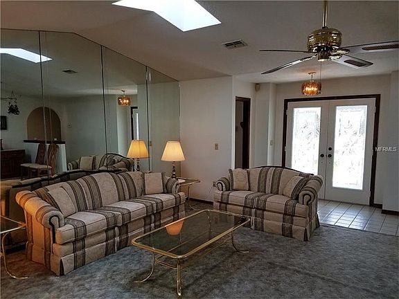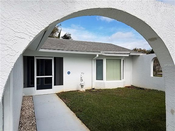 Situated on a large pond front interior corner lot, this well-maintained Greenbrook Estates home has much to offer! With 1744 square foot of living space, this open concept floorplan is light and bright with vaulted ceilings, two updated skylights, and all updated double-paned energy efficient windows and doors. The massive 20x15 Kitchen/Dinette combo features large bay window with a sweeping long view of the pond. In addition to the large 20x15 Living/Dining Room combination, this home has an additional 35x10 Family/Florida Room to the rear. With the addition of one simple wall, a third 13x10 bedroom could be easily created in this space while still leaving a large functional Family Room. Updated features include Roof, Skylights, Windows, Glass Double Entry Doors, Garage Door & Lift, and A/C Heat Pump. Termite warranty service in place. Community club house and pool for a low $256.30 ANNUAL HOA fee. A-Rated Schools. Very close to the booming Trinity area with easy access to the Trinity Medical Center, Suncoast Parkway, shopping, and recreation.