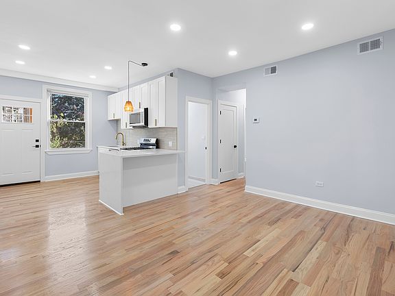 Beautifully rehabbed and updated unit in the Irving Park neighborhood! Finishes include stainless steel appliances, quartz countertops, white cabinetry, beautiful fixtures and hardwood floors throughout. In unit washer / dryer, bathroom has walk-in shower with glass doors and quartz surrounds. All new windows with blinds.