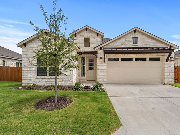 3805 Wales Court in Round Rock, TX 78681 is a beautifully maintained 3-bedroom, 2-bath home located in a gated community. This single-story residence features a spacious, open floorplan with high ceilings, recessed lighting, granite countertops, crown molding, and no interior steps. The kitchen includes a large island and ENERGY STAR-qualified stainless steel appliances, including a gas cooktop, oven, microwave, refrigerator, and tankless water heater. Additional highlights include two primary baths, double vanity, walk-in closets, ceiling fans, and high-speed internet. Flooring consists of carpet, tile, and vinyl throughout. The home sits on a landscaped lot with mature trees, an automatic sprinkler system, a front porch, private deck, and attached two-car garage with gated driveway access. Exterior construction includes HardiPlank and stone with a composition shingle roof. Community amenities feature walking trails, a dog park, cluster mailboxes, and common areas with high-speed internet access. Pets are welcome, with size limits and some restrictions. Conveniently located near shopping and dining, the home offers quick access to La Frontera Shopping Center, Round Rock West Shopping Center, and local favorites like Mayfield Garden Cafe. Everyday essentials like H-E-B are just a short drive away!