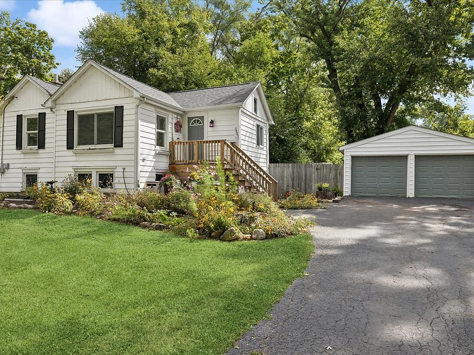 #cottagecore! It's a lifestyle! Sundrenched 2 bed cottage on over a 1/4 acre in a low traffic neighborhood adjacent to Lake Nippersink, Glacial Park, and Chain O' Lakes State Park! Cathedral Ceilings and Skylights in the open GreatRoom style Living and Dining leads to the Kitchen with Pantry closet & Pantry cabinet, Dishwasher, Table Space and door to party deck in the nice fenced yard! Primary Bedroom with vaulted ceiling & a big closet! Bright 2nd bedroom with generous closet. Large updated bath has an extended vanity & linen closet. New Roof in 2021 & new A/C in 2023. Laundry in the exterior access cellar. Extra parking pad next to the big solid 2Car Garage -it needs siding repairs yet there is room for an additional new oversize tradesmans garage also - so bring all the toys! Desired D#114 & 124 Schools! Perfect opportunity for investors or homebuyers with a tool belt, this move-in ready home includes the quirks, projects and rustic charms of an old cottage and is therefore being offered and conveyed "AS-IS & Shown". Fast close ok!