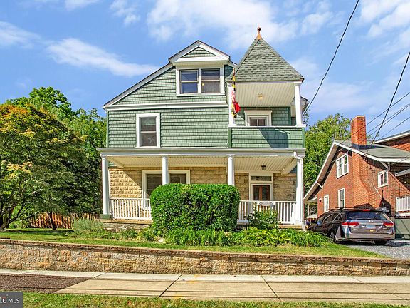 Gracious Victorian with two balconies and a turret! Beautifully situated high above the street on a double lot in charming Mount Rainier! Lovingly improved with a new retaining wall, walkway and permeable driveway & sidewalk. Energy efficiency addressed with a high-end heating system, Pella windows, new siding and the Solar Panels are owned outright! Welcoming covered front porch. Gorgeous entry door and transom above, both with beveled glass windows. Classic foyer with a decorative mantle, 9' ceilings and gorgeous heart pine floors have just been refinished! 5-panel pocket doors lead to the spacious living room with 3 windows. The side entry door also has a transom for natural light into the hallway. There's a coat closet and a storage closet Harry Potter would love - plus the main level half bath is a great size. The dining room has oak floors, a Queen Ann-style bay window and built-in shelving for storage and display. The spacious and well-organized kitchen is the heart of this home with its Corian counters, new induction cooktop and high-end stainless steel fridge! Useful prep sink has instant hot water. At back is the breakfast nook and laundry room with a vaulted ceiling. A sliding glass door leads to the spacious screened porch you have been dreaming of- What a lovely spot for alfresco dining! The porch has a brand new roof and gutters too. Heading upstairs notice the decorative leaf pattern on the original wooden newel post. A super useful built-in area was added to the windowed-end of the upstairs hallway - great for crafting. Don't miss the stained glass light fixture and lovely medallion on the ceiling. The second floor has four spacious bedrooms and a full bath. The front bedroom has access to a lovely balcony plus there is a doorway between the two front bedrooms to connect them yet maintain privacy. The left rear bedroom enjoys its own private balcony too! The top level is one big 36' room divided by the open stairwell. Don't miss the charming turret space! A mini-split was added to this bedroom to improve comfort. There's lot's of storage under the eaves and additional storage space behind the closets that also holds the A/C unit. What a big beautiful yard! Plenty of room for you to plant, play and entertain! Fully fenced rear yard with a useful shed. Lovely trees including Crape Myrtles, Weeping Willows and more! Cellar access is via the back yard and holds the high-end heating/hot water system. Fabulous location near shops & restaurants and public transportation. Don't miss Penny Royal Station and Era Wine Bar and the good old Glut Food Co-op! Send the kids to Joe's Movement Emporium for all their after school and weekend programs. What a gem - you will love living here!
