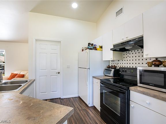 This home has been beautifully updated and boasts vaulted ceilings as well as lots of indoor and outdoor living space. If you appreciate a tropical Florida landscape with room for growing Avocados, Mangos, Citrus trees and gardens, this is the ONE! Located on a dead end street, you will love the peace and quiet of this home that offers plenty of room for storage and grown-up toys. Upgrades include: New light fixtures, BRAND NEW Modern Flooring, Master bath vanity, window coverings and more! This pristine charmer is located in the highly sought after SW section of Lehigh Acres and an easy commute to Fort Myers or I-75. This would make a terrific Primary or 2nd Home Residence. Add in the bonus value with the convenience of Shopping, Restaurants, SW International Airport ("RSW"), White Sand Beaches, Sanibel & Captiva, the Red Sox and Minnesota Twins Stadiums, FGCU and the exciting Daniels and Colonial Parkway/SR-82 Corridor. Prices are rising so call today to schedule your private tour!