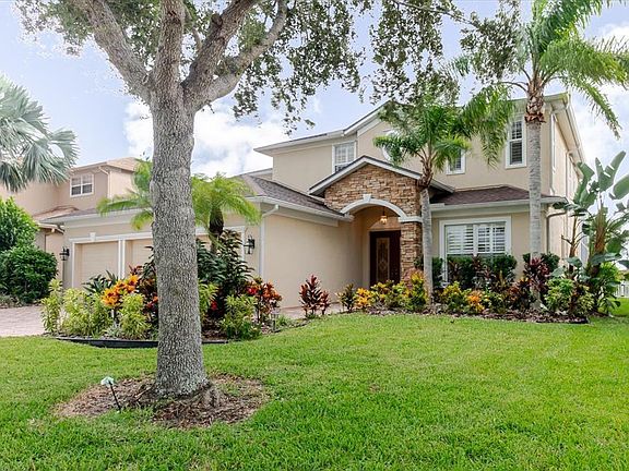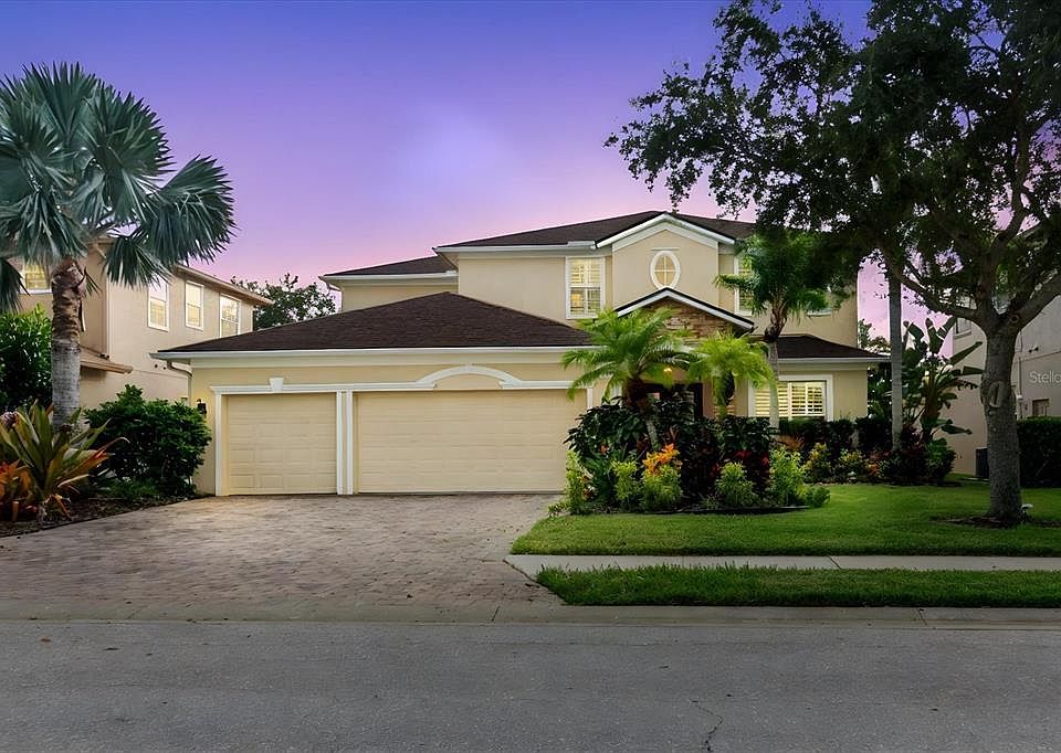 Welcome to this beautifully designed 6-bedroom, 4-bathroom two-story home located in the desirable RIOMAR Community. This spacious residence offers a 3-car garage, paver driveway, and elegant double glass entry doors that lead into a stunning foyer with inlay tile detailing. The first floor features a private guest bedroom and full bath, formal dining and living rooms, a large family room, and a cozy nook area seamlessly connected to the open-concept kitchen — all with gorgeous views of the backyard oasis. Enjoy indoor-outdoor living through two sets of sliding glass doors that open to a generous lanai complete with an outdoor kitchen, ample seating space, and a resort-style inground pool that's enclosed with a screen Lanai, perfect for entertaining or relaxing. Upstairs, the luxurious owner's suite offers enough space for a private seating area, tray ceiling, and a custom walk-in closet. The owner's bathroom includes dual vanities, a walk-in shower, and a universal jetted soaking tub.. The second floor also features four additional bedrooms, each connected via two Jack and Jill bathrooms, providing convenience and privacy. Recent Updates: Roof replaced December 2024, Two A/C units – one replaced in March 2023, the other in April 2025, Water heater replaced in October 2022 Scheduling your private showing today!!!