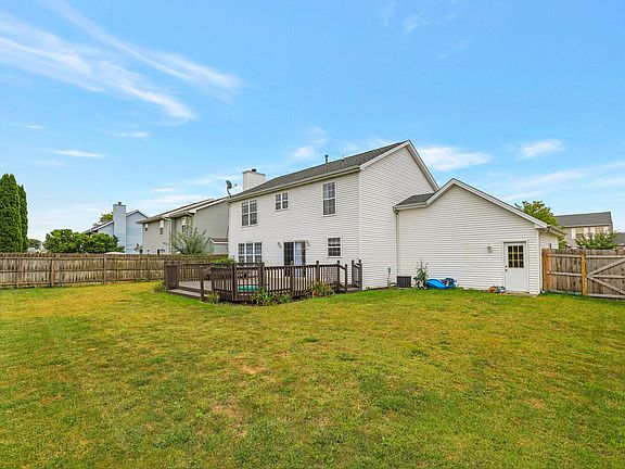 Fabulous 2 story home with 4 Bedrooms / 2.5 Bathrooms plus an office/flex room and a full basement partially finished. The home includes spacious bedrooms, separate dining room, first floor laundry/mud room, two car garage and a large backyard with a huge wooden deck and privacy fence. The open concept kitchen has solid surface Corian countertops, and a separate dining area that flows into the family room. The primary bedroom ensuite provides a walk in closet and a large bathroom with double vanity, soaking tub and separate stand up shower. The quiet neighborhood offers a nice park and some walking paths. New roof in 2014. All appliances stay!