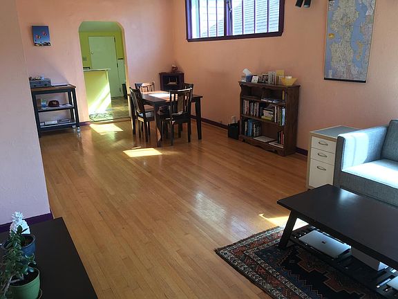 Basics: Dishwasher, central heat, shared storage area and washer & dryer in basement. You'll be one block from Fremont restaurants and shops, and with easy access to Highway 99 and multiple bus routes (5, 26, 28, 31, 32, 40, 62, and 82). Walk Score of 95. Basement apartment is rented separately; upstairs and downstairs units are separately keyed. Features: - Front deck with views - Master bedroom has built-in speakers, a safe, and a cozy reading nook - Large living room has hardwood floors, warm peach-colored walls, and large picture window views - High ceilings - Shared access to the back yard, which includes a brand new deck and a peaceful paved terrace under a beautiful giant willow tree - Fully landscaped (lilacs, wysteria, roses, etc.) Tenant responsible for utilities; sorry, no dogs or smoking