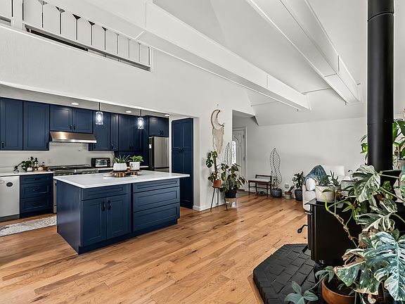 Welcoming layoutCovered patioAbundant natural lightHardwood floorsRaised garden bedsFruit treesLush greenery