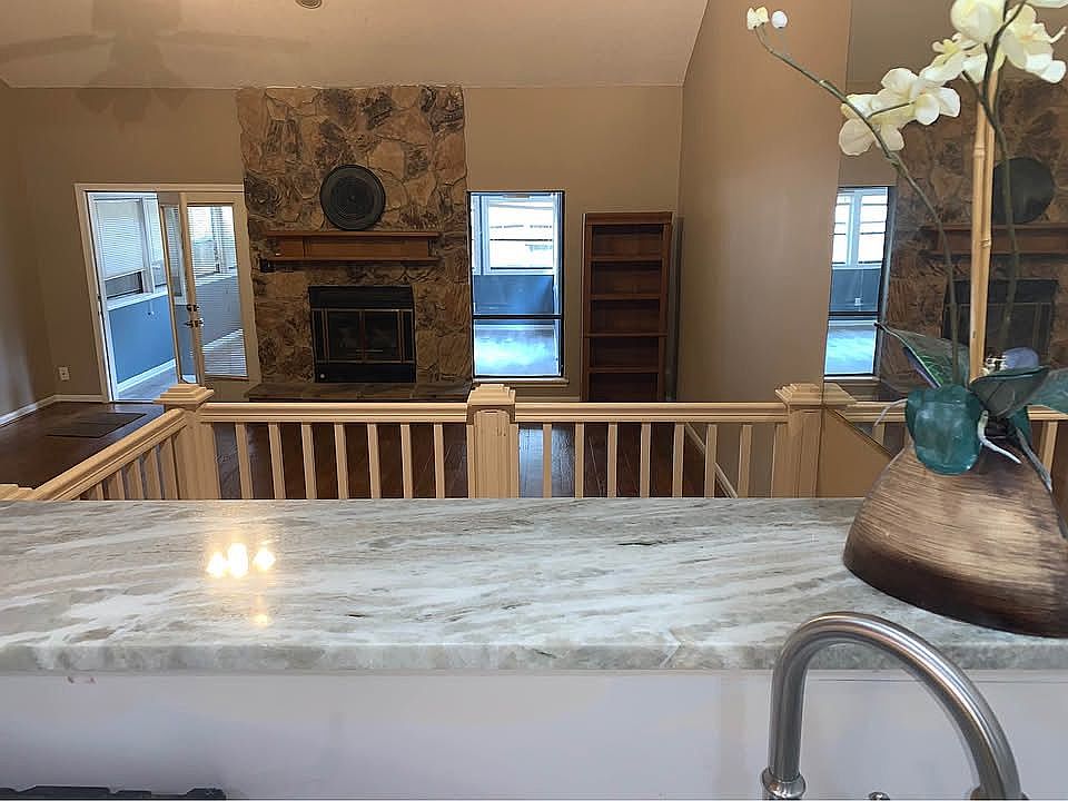 Master and another bedroom up. 3 bedrooms, 3.5 baths plus a Bonus Room/Sun Room