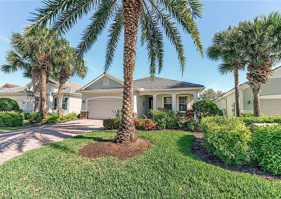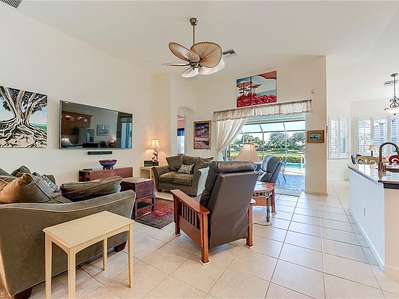 Have you ever dreamed of starting your day with a relaxing cup of coffee while watching a gorgeous Florida sunrise? Well here's your chance to make that dream come true! This beautiful 3 bedroom, 3 full bathroom pool home with almost 2000 sq. ft. of living space offers eastern exposure and an extended lanai where you can kick back and soak in the view of your pool and the lake with the egrets, herons, ibis and wood storks that frequent our area. Other features include tile throughout the main living areas of the house and engineered wood flooring in the 3 bedrooms (2 of the bedrooms are en suite); a wet bar with wine fridge, sink and cabinets; remodeled kitchen with quartz counters, extended counter space, new LG stove and cooktop, large farmer's sink and soft-close drawers with pull-outs; plantation shutters in the breakfast nook and metal hurricane shutters all around the house for secure storm protection. If you enjoy painting or crafting, this is the house for you! The 2 car garage is fitted with a Mitsubishi split air conditioning unit to keep you cool as well as an extractor fan for your painting, crafting and modeling projects. Located in the beautiful gated community of Verandah, buyers are eligible to join the Verandah Club where they can avail themselves of Verandah’s wonderful amenities including two championship 18-hole golf courses, 5 Har-Tru tennis courts, 8 pickleball courts, 2 bocce courts, resort style swimming pool, state of the art fitness center and two restaurants. Located in one of Fort Myers’ most desirable communities, this home is truly a must see! Make your appointment today!