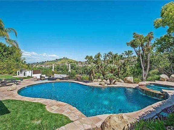 Situated behind private gates of the exclusive Calabasas Park Estates with unobstructed golf course views. This 5 bedroom 5 bath newly renovated home, features a grand entry, soaring ceilings, hardwood floors, open floor plan and multiple fireplaces. Formal dining room, remodeled chef's kitchen with center island and marble counters, stainless steel appliances and large windows overlooking Calabasas Country Club golf course. Spacious master bedroom with walk-in closet, large master bath with soaking tub, double vanity and walk-in shower is complimented by 3 additional bedrooms upstairs and one bedroom down stairs. The entertainers yard is complete with covered patio, BBQ center, large wooden deck, and heated pool and spa. The contemporary redesigned interior is freshly painted and is move in ready.