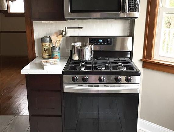 Beautifully remodeled in 2016! This 3 bedroom, tudor style home boasts an all-new kitchen with new espresso wood cabinets, subway tile backsplash, new counters, stainless steel appliances and porcelain tile flooring. Bathroom includes a new vanity with granite counter, sink, faucet and mirror, beautiful ceramic tiled floors and shower with a new tub. Newer carpeting, new fixtures and neutral paint throughout the home with original hardwood floors in the dining room and living room. Dining room also features two original, built-in cabinets. The basement includes a finished rec room with new carpeting and new glass block windows. This home also includes a newer roof with dimensional shingles, AC unit, furnace and new 50 gallon hot water tank with updated electric. New vinyl siding and gutters (2016) and new landscaping with a charming front porch and newly stained backyard deck, and two-car garage. Prime location - close to shopping, restaurants, highways and schools. This home is ready for you to move in and enjoy! Call to see it today!