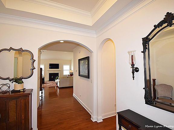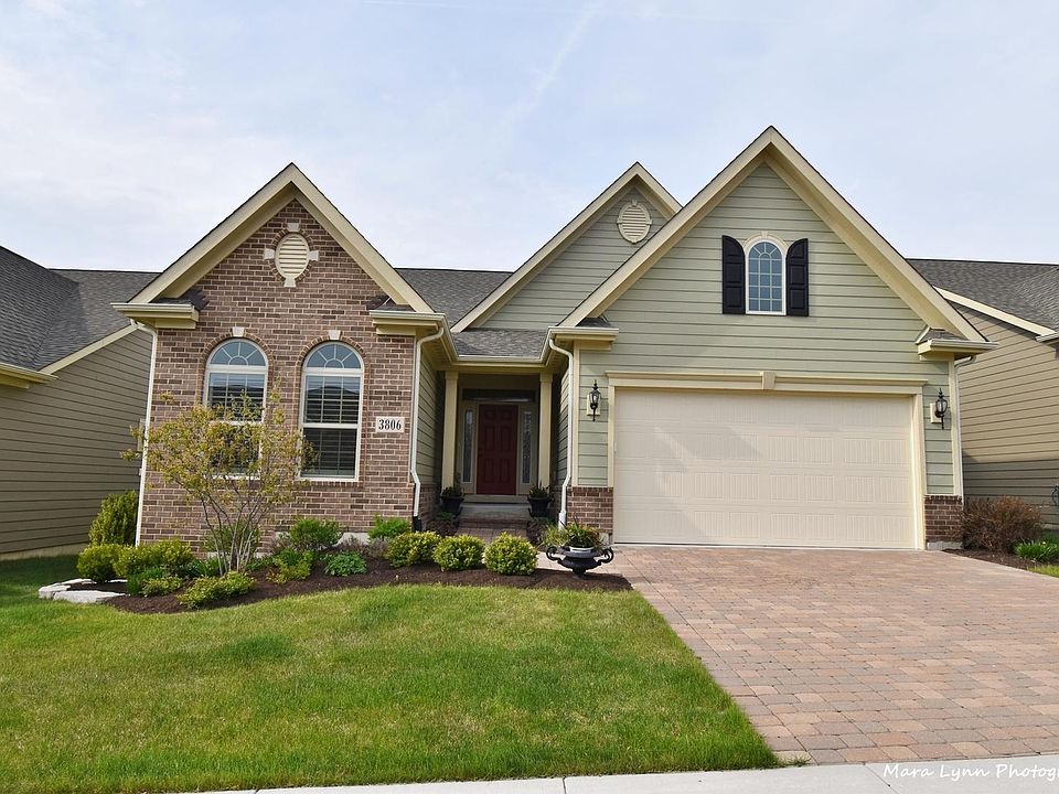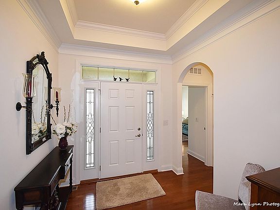 Wonderful Light and Bright Move in Condition Custom Ranch Home Beauty with Numerous Upgrades including Gorgeous Hardwood Floors throughout! The Dream Kitchen has Beautiful Custom White Cabinetry, Granite Counters, Upgraded Stainless Steel Appliances, Center Island w/Breakfeast Bar, Pantry Closet, and Large Eating Area that opens to Both Living/Family Room and Great Trex Deck! The Spacious Great Room w/Heatilator Fireplace is wide open from the Kitchen and is perfect for both everyday living and entertaining! This home features a 26' x 14" Master Bedroom w/combined sitting room featuring Volume/Coffered Ceilings, Walk in Closet, and Luxury Bath. Bedroom Two w/Volume Ceiling and Palladian Windows has been bumped out which allows for a large walk in closet! French Doors lead to the Perfect Office Space in this great home! The Full Upgraded to 9 Foot Ceilings Walkout Basement with Four Full Size Windows and French Doors Leading to Patio and rough in for bath is here for whatever your needs may be! Outside you will find an abundance of beautiful landscaping, gorgeous Brick Driveway and Much More! Features like high end Plantation Shutters throughout, security system, high efficiency furnace w/Honeywell Humidifier, Paver Patio, Sprinkler System in front which is covered by association and More make this better than new!