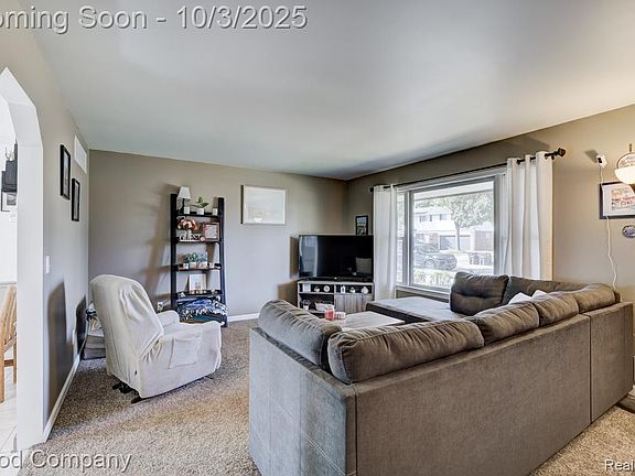 Matterport virtual walkthrough available on Homes. Wonderful home in Livonia with a beautifully updated eat-in kitchen, spacious lower-level family room, and a large backyard. A charming covered front porch and well-kept landscaping provide great curb appeal as you walk into the inviting living room filled with natural light. The eat-in kitchen features tile floors, stainless steel appliances, modern cabinetry, and a sleek tile backsplash, plus a cozy dining area with direct access to the backyard. Head downstairs to a large family room with plush carpet, recessed lighting, and a stylish full bath, creating the perfect hangout or movie night spot. Upstairs, three comfortable bedrooms share a second full bath with neutral tones and updated finishes. The fully fenced backyard offers a huge patio, plenty of green space, and beautiful mature trees providing shade and privacy. A spacious detached two-car garage adds even more convenience. Welcome Home!