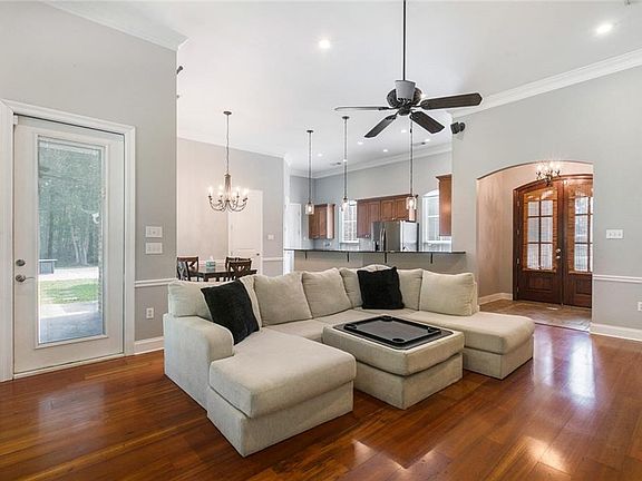 Welcome to this gorgeous 3-bedroom, 2.5-bath brick and stucco home that perfectly blends comfort, style, and functionality. Nestled on an oversized lot, this property features a spacious open floorplan with neutral tones and large windows that flood the home with natural light. The heart of the home is the kitchen, complete with a long bar counter ideal for quick meals and entertaining. The primary suite offers a luxurious retreat with a jacuzzi tub, a large walk-in closet, and a tranquil atmosphere. Enjoy year-round outdoor living in the beautiful covered entertainment area, perfect for gatherings or quiet evenings. A long driveway leads to a double-car attached garage and provides convenient backyard access. The property also includes an additional building with water and electrical, previously used as a home office—ideal for remote work, a studio, or guest space. The fenced area, accessible via a doggie door, is perfect for pets, adding to the home's thoughtful design. This home truly has it all—space, charm, and versatility in a serene setting.