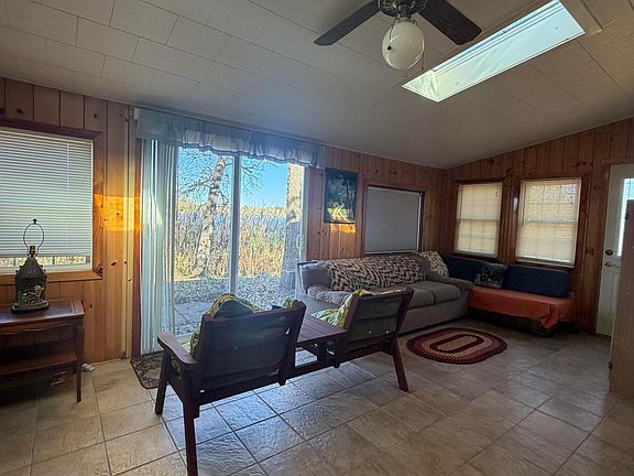 This seasonal cabin is equipped with a large siting area, spacious kitchen, dock, small storage shed, septic holding tank, newer roof, and a new sliding patio door.