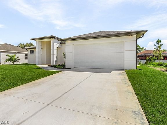 SELLER OFFERING A CLOSING PACKAGE AVAILABLE WITH OUR LENDER WITH A 2-POINT RATE BUY DOWN FOR THE LIFE OF THE LOAN Welcome to your dream home! !!LOCATION!! between sunshine and Gunnery southwest area is excellent for easy commute to fort Myer's This brand-new construction 4 bedrooms and 2 full baths, offering a spacious haven encompassing of elegant living space. Ready for your pool with an outdoor kitchen, it's a Florida dream. Inside, bask in the glow of high 13ft ceilings and elegant 8-foot doors, adding an air of grandeur to every room. The kitchen is a chef's paradise, featuring pristine. white cabinets, a stunning waterfall island, Stainless steel appliances in place The master bath with a double vanity, walk-in shower, soaking bath, enclosed restroom, and two walk-in closets. The regular bath features a sleek walk-in shower. desirable Lehigh Acres, this home yours today and start living the life you've always imagined. Don't wait - view today