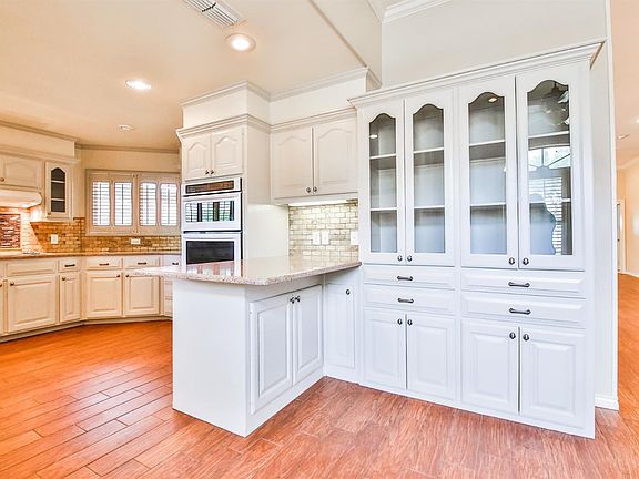 Kings Park beauty adjacent to Clifford Andrews park! Freshly painted and impeccably cared for 3bed 3bath executive garden home nestled on quiet double cul-de-sac away from the hustle and bustle of booming South Lubbock. Open living/dining area with wall of windows that invite tons of natural filtered light. This room offers a double-sided gas log fireplace, hand scraped floors, and large wonderful space for gathering with family and friends. Efficient kitchen layout with cabinets galore, functional appliances, a breakfast bar and additional casual dining area. Bonus room shares the double sided gas log fireplace and lends itself to many flexible uses, think library, home office, craft room, media room..! Retreat to rear of home to secluded and tranquil master suite. Luxurious master bath offers walk-in soaking tub, separate shower, double vanities, walk-in closet and excellent storage. Upstairs is another bathroom/bedroom with walk out balcony w/amazing view of the lake!