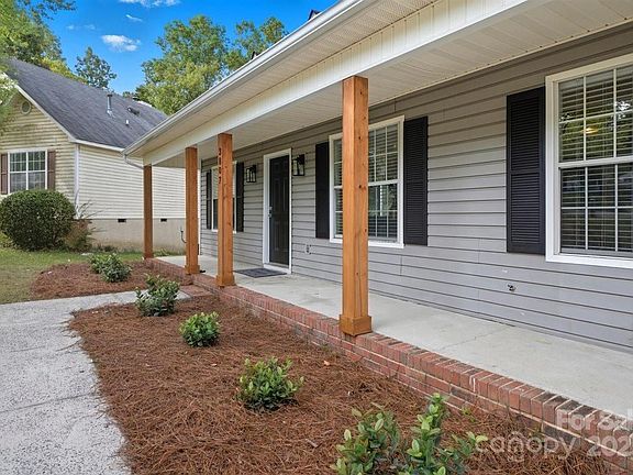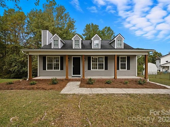 Welcome to this beautifully updated one-story home, perfectly situated on a peaceful cul-de-sac in the desirable Matthews area. This charming property features a welcoming covered front porch with rustic wooden posts and a recently refreshed exterior. Step inside to discover a bright, open-concept floor plan with vaulted ceilings, a cozy fireplace, and stunning wood-look flooring throughout. The modern kitchen is a chef's delight, boasting a large quartz island with a breakfast bar, sleek white cabinetry, and stainless steel appliances. The spacious living and dining areas flow seamlessly, providing an ideal space for entertaining. Retreat to the primary bedroom, which offers a private ensuite bathroom with a double vanity and a skylight, a walk-in closet, and a stunning accent wall. Enjoy the outdoors on the screened-in back porch, which provides a serene escape overlooking the private, wooded backyard. This home combines modern updates with classic charm and is a true must-see.