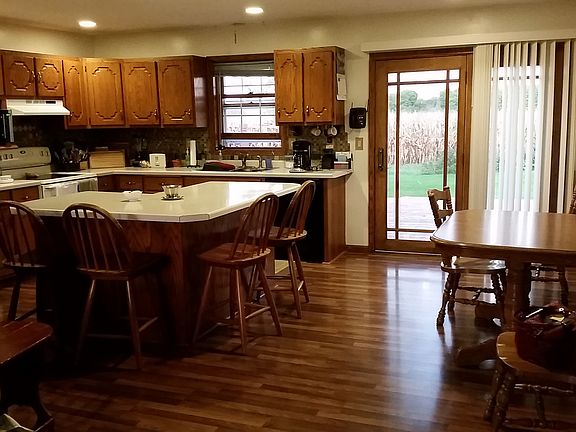 Ranch style house with older machine shed on quiet 2 acre homestead...Newer oil furnace, New gutters, Table, Chairs , Deep Chest Freezer... PLUS The Farmhouse and Barn on the adjacent 2 acres