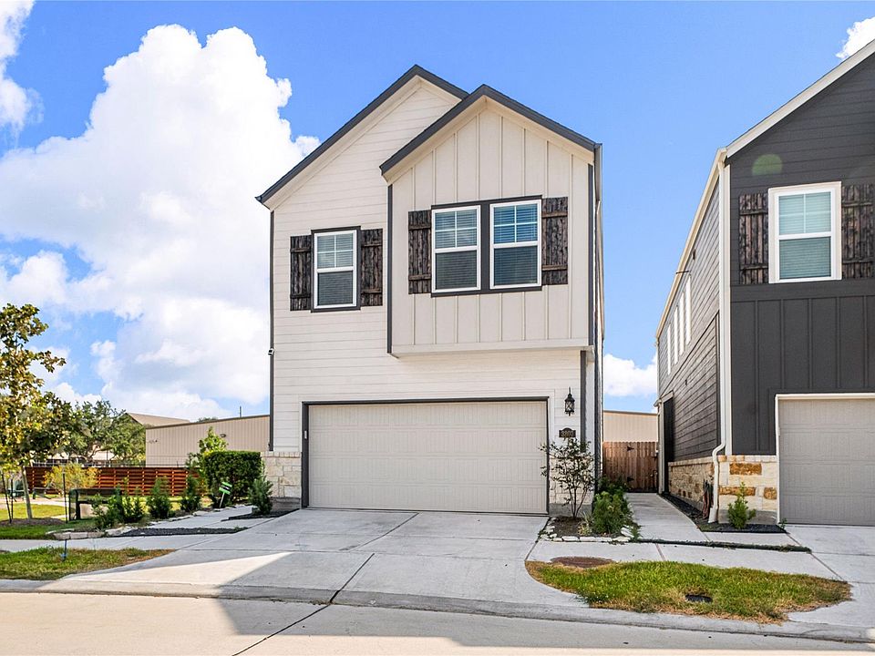 Two-story traditional home built in 2023 with brick, stone, and wood exterior, located in the GATED community of McClendon Park Village. Features 4 bedrooms, 2.5 baths, a game room, and a 2-car attached garage.